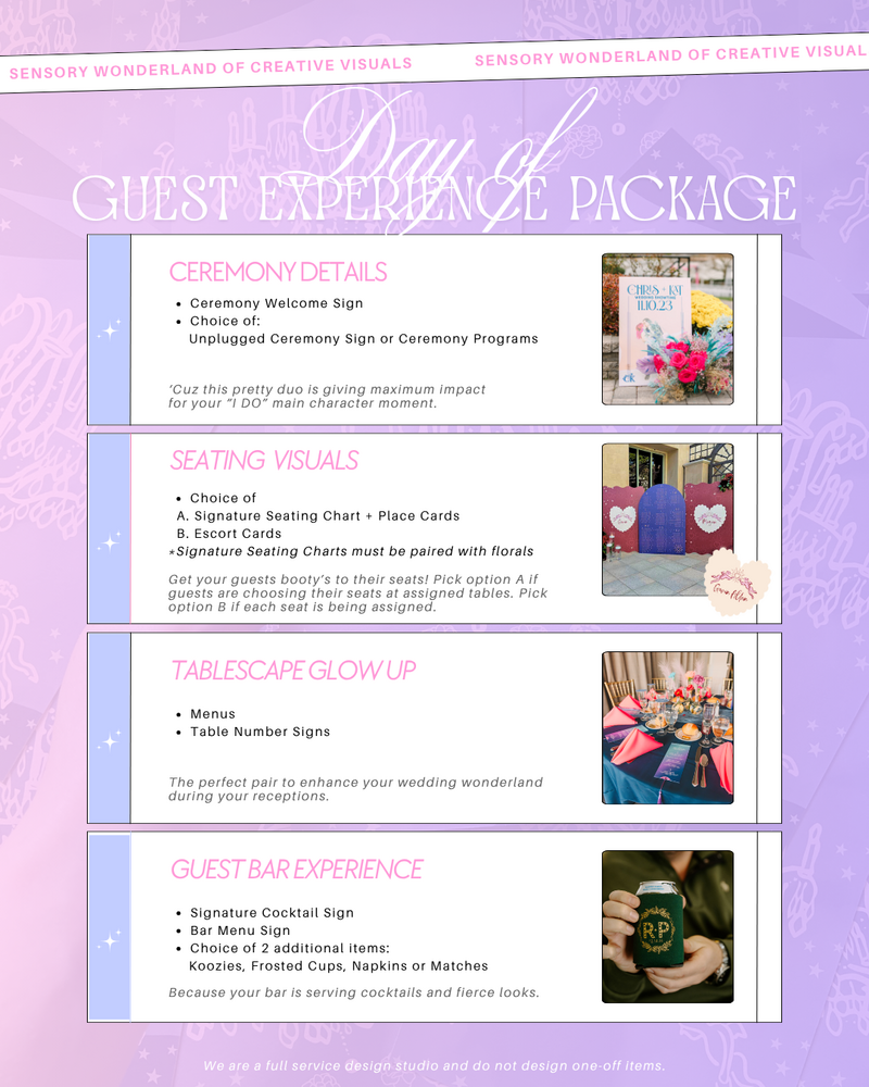 UP TO 100 GUEST PACKAGE: INVESTMENT STARTS AT $4,300